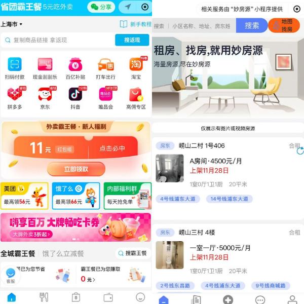 在记者的调查中,加贴的二维码主要跳转到“省团霸王餐”“妙房源”等小程序。经核查,“省团霸王餐”的开发方为杭州志永网络科技有限公司,“妙房源”的开放方是妙敏数字科技(上海)有限公司。