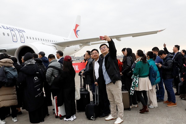 东航特别为此次C919“汉沪快线”首航制作了纪念卡册,包括首航纪念登机牌和东航C919徽章。在武汉天河机场,东航武汉的乘务员们化身“楚小燕”,在登机口热情邀请旅客们在首航纪念签名板上留下签名,并以“楚舞”表演庆祝东航C919亮相武汉,也赢得旅客们的掌声和点赞。