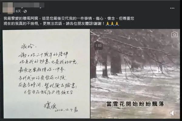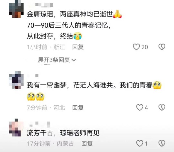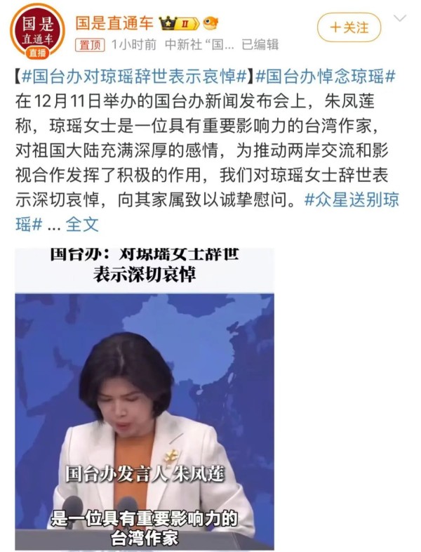 琼瑶的秘书表示:“我最挚爱的琼瑶阿姨,这是您最后交代我的一件事情,伤心、怀念、但尊重您,现在的我真的不舍得,更无法言语,请各位朋友体谅!谢谢!”